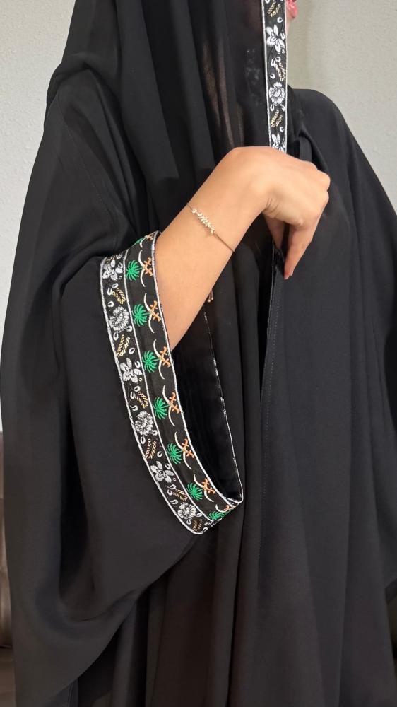 تخيّلي نفسك في يوم الوطن، بخطوات واثقة، وأنتِ ترتدين عباءة تروي قصة الانتماء، بتصميم واسع ساتر يمنحك راحة الحركة، وخامة فاخرة تعكس رقي ذوقك. ليست مجرد عباية، بل قطعة تعبّر عن فرحك بالوطن بروح ملكية فريدة.