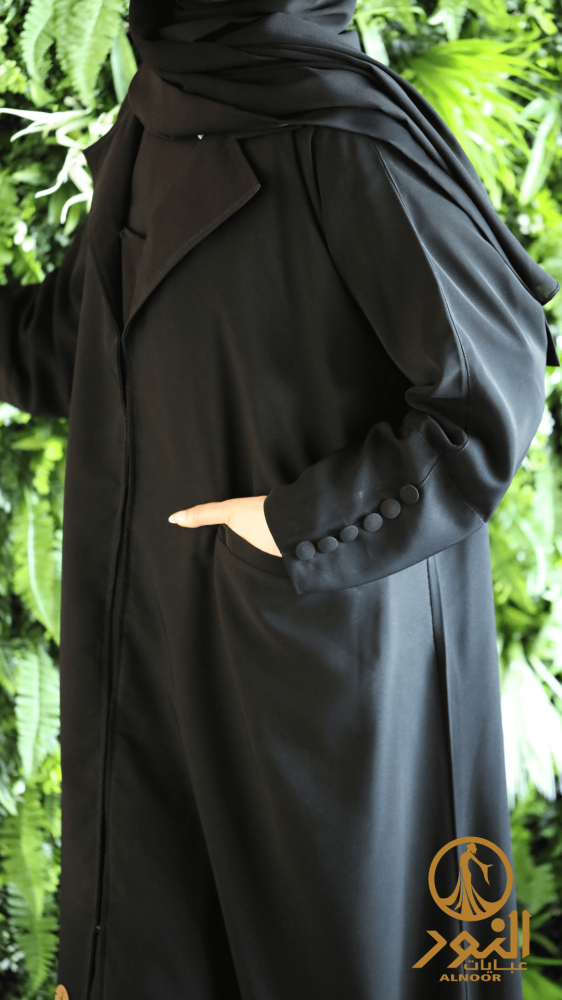 عبايات رسميه للدوام اكتشفي روعة الأناقة والعملية مع عباية رسمية عصرية بأزرار بالأكمام منسوجة بخامة االلمار .تجمع هذه العباية بين التصميم الأنيق والوظيفية العملية لتمنحك إطلالة ساحرة . تأتي بتصميم مريح وعملي يوفر لك الحرية في الحركة والراحة طوال اليوم.